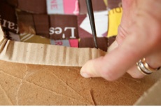 4 – Si vos cartons manquent de longueurs, petites astuces : dédoublez sur 2 cm à une extrémité. Retirez l’ondulation centrale. Avec un pistolet à colle, fixez une autre bande pour obtenir la longueur désirée.